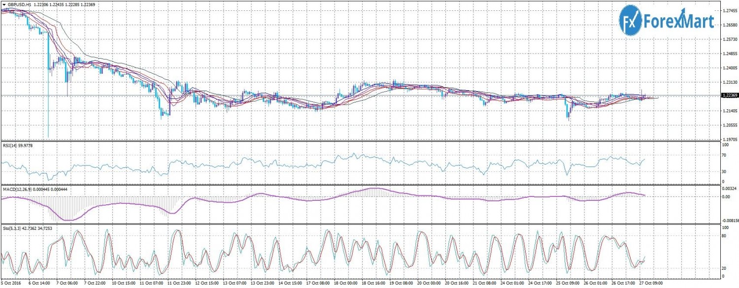 Вчера фунт был в центре внимания из-за своего резкого внутридневного разворота - диапазон пары был выше 100 пунктов. После публикации отчета о ВВП Великобритании пара достигла уровня 1,2272, после чего резко просела. Рост ВВП в Великобритании показал лишь первичные последствия BREXIT. Показатель вырос до 0,5%, при прогнозе роста до 0,3%. Преждевременно делать какие-либо выводы, ведь официальный выход Великобритании из ЕС начнет только в марте следующего года. Сегодня фунт будет полность зависим от американской валюты. Рынок сегодня ожидается выхода статистики из США по ВВП, и, если она окажется сильной, фунт просядет снова.
