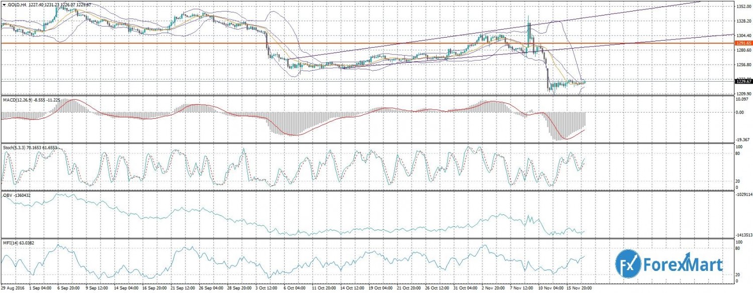Валютная пара швейцарский франк/доллар США продолжила восходящее движения на фоне выступления главы Федрезерва. Йеллен укрепила ожидания о декабрьском повышении ставок и никак не комментировала нового президента и будущую политику. Вероятно сказать ей по этому поводу просто нечего. Пара движется к ближайшей цели 1.0125, оставив позади линию паритета. Индикатор RSI находится в области перекупленности, неделя завершается, сильных новостей, кроме выступления Драги на сегодня не предвидится. Скорее всего трейдеры будут закрывать позиции, фиксируя прибыль. По прежнему ждем коррекции в рамках наметившегося восходящего тренда.