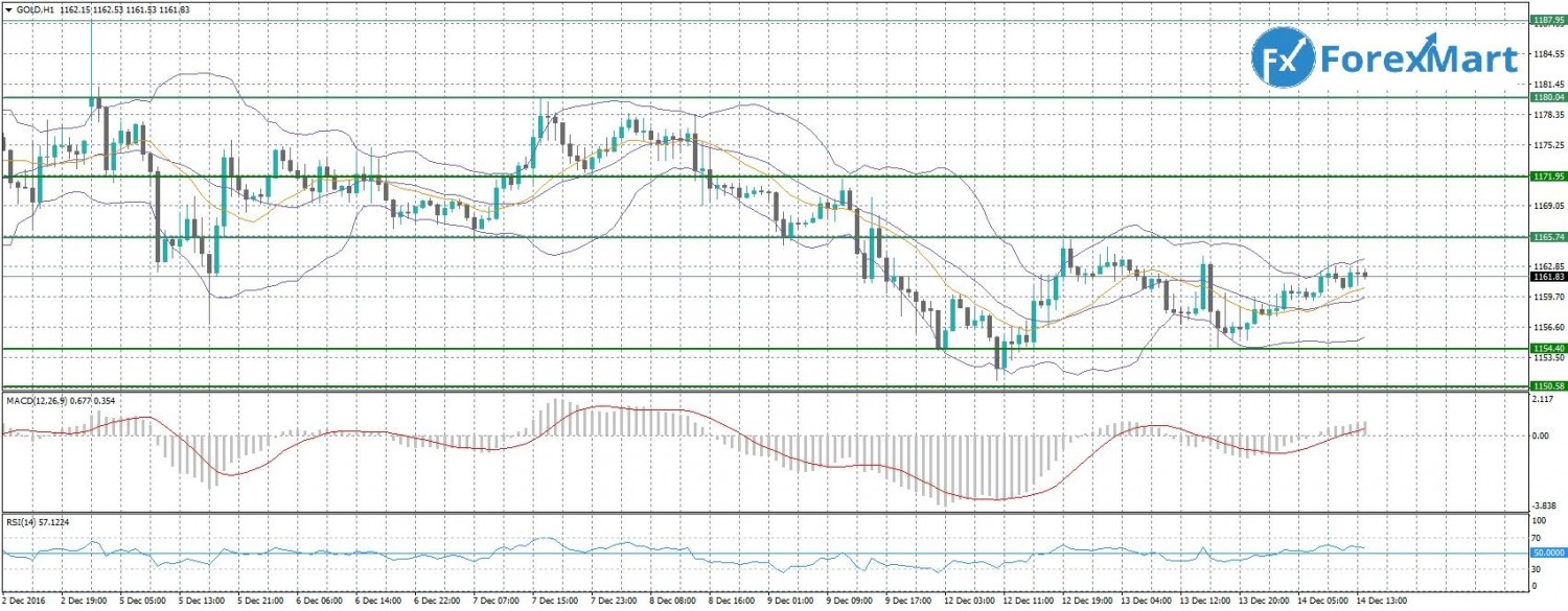 На фоне ожидания решения по процентной ставке ФРС золото вновь стало снижаться. Кроме того, на металл оказывает давление и усиливающийся отток вкладов из специализированных биржевых фондов по золоту, а также сокращение импорта золота в Индию. В связи с этим февральский фьючерс на золото подешевел в цене до 1158,64$. Таким образом, уровнем сопротивления для золота сегодня вялется 1162$, уровнем поддержки - 1158$. Вероятнее всего цена сегодня двинется в район уровня сопротивления.